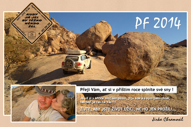 24.5. 16:00 hod. - Tak už jsme zas v Čechách, včera jsme dojeli poslední část trasy. Asi 1 km před dojezdem na asfalt odešla na Patrolu "Růžovce" vodní pumpa, tak jsme ho asi 30 km odtáhli do servisu, kam jsme dojeli v pátek v 17 hod. Rumun ochotně sedl k PC, našel a objednal díl a dnes dopoledne auto opravil - "MILUJU RUMUNY". V Čechách by se na něj v pátek večer každý vyprd. Kilař jel s Cherokeem nejbližší cestou na asfalt, kde na "Indiánovi" praskl druhý - zadní pravý měch, tak zajistil opravu a odtah až do ČR a posádku dovezl na poslední tábořiště. Já za týden letím domů - do Namibie. Tak zas někdy, zdar Náčelník