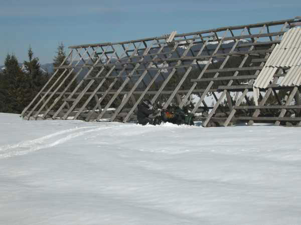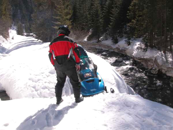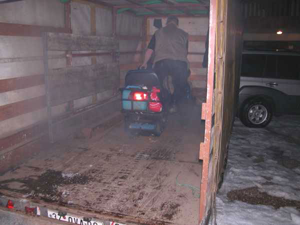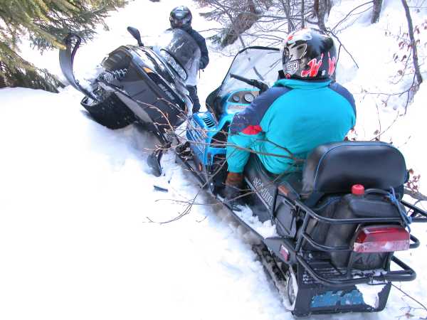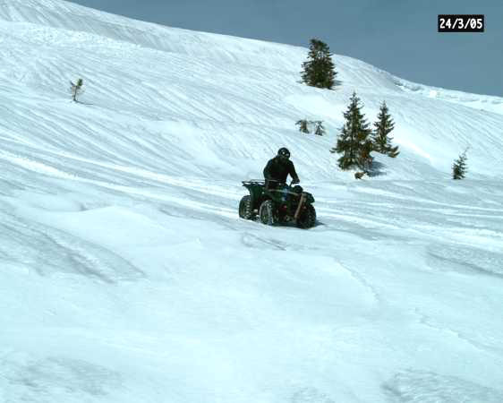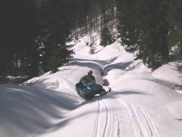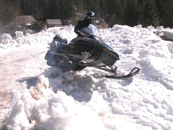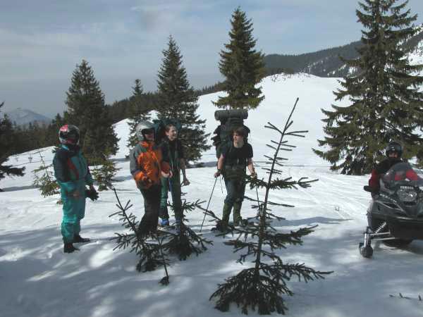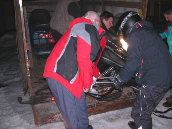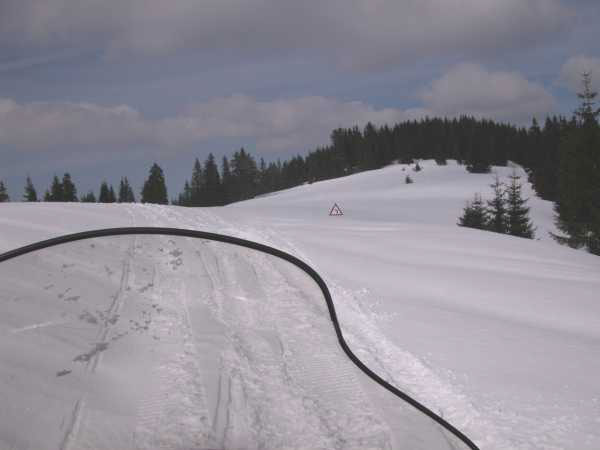 na vleku za autem. Skončili jsme totiž v 50 km vzdáleném údolí asi v 700 m.n.v., kde už nebylo dost sněhu pro skútry.