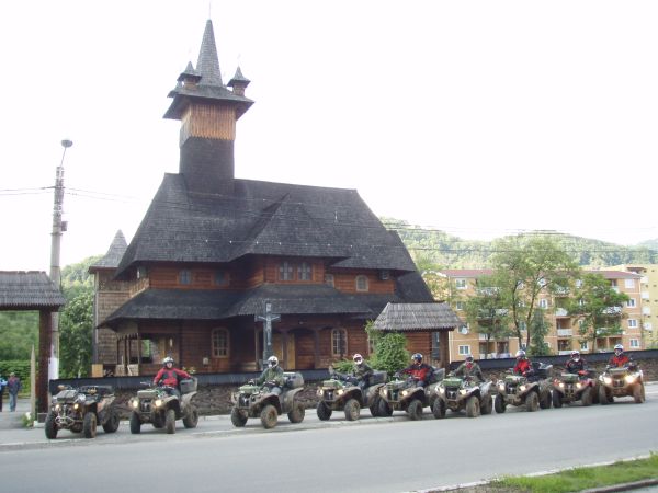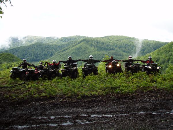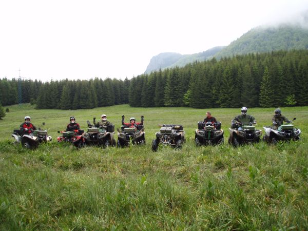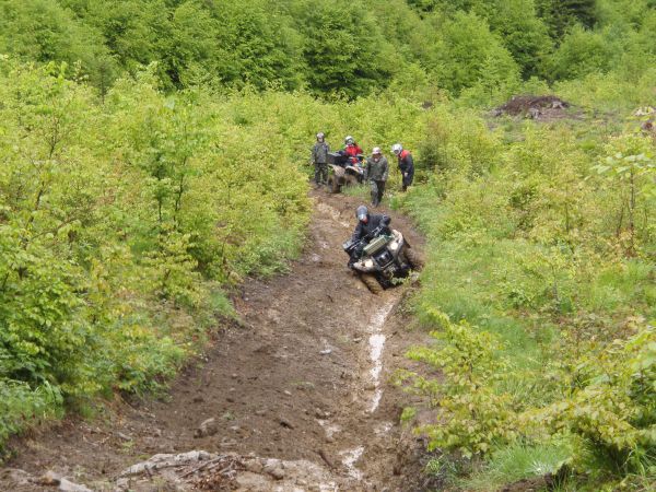 Při přesunu po přesunu po prachovkách to v ostré pravé poslal jeden z KingQuadů do lesa, ale ladně pokračoval dál. Pak přes Beiusu a zpět přes bukové lesy. Celkem jsme najeli