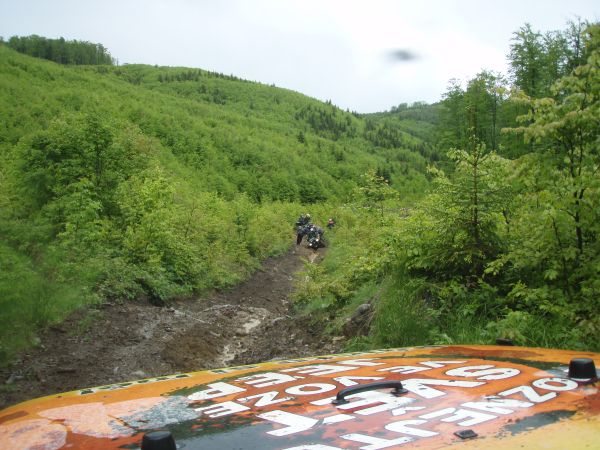 18 hod. - Ráno jsme opravili v Beiusu na soustruhu poloosu, už kolem 10. hodiny jsme vyrazili po hřebenech směr Vladeasa. Už téměř klasicky nás v půlce cesty potkal déšť a bouřka, tak jsme se schovali
