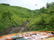 19 hod. - Dojeli jsme z dnešní trasy, dnes jsme dali "jen" 100 km. Začátek byla svaznice roztržená erozní rýhou - bylo to akční. Pak hřebenovka a sjezd svaznicí, tam Olin