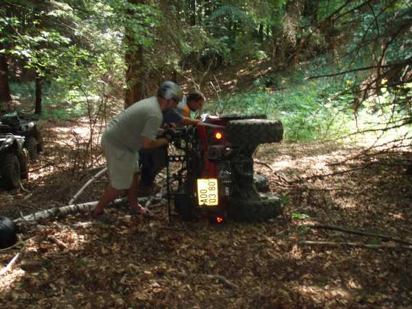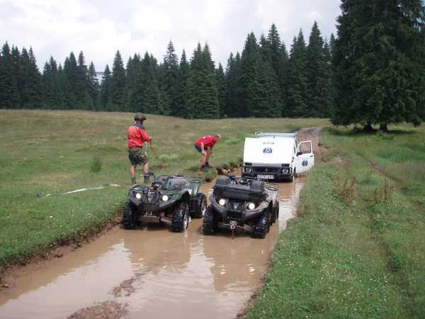 10.00 hod. - Tak jsme posnídali a vyrážíme na čtyřkolky. Včera jsme místo zahřívacího dvouhodinového výletu na ATV dali šestihodinový trial po lesních