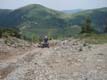 teď dáváme pauzu na oběd (chléb, paštika, šproty, cibule) na skalním žebru. Pohoda, nikde živáčka. Kdo sledoval červnové info, tak jsme pod sněhovým valem, který měl 4 metry,