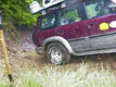 Perryho. Po deštích je z cesty sáňkařská dráha. Můj Patrol se po 20 metrech sjezdu kluzmo