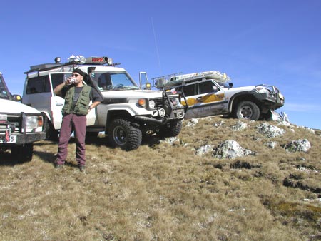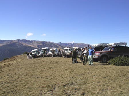 Hřeben 2.056 m, dostalo se sem pouze sedm "statečných". Ostatní tři vozy pokračovaly po cestě pod hřebenen.