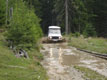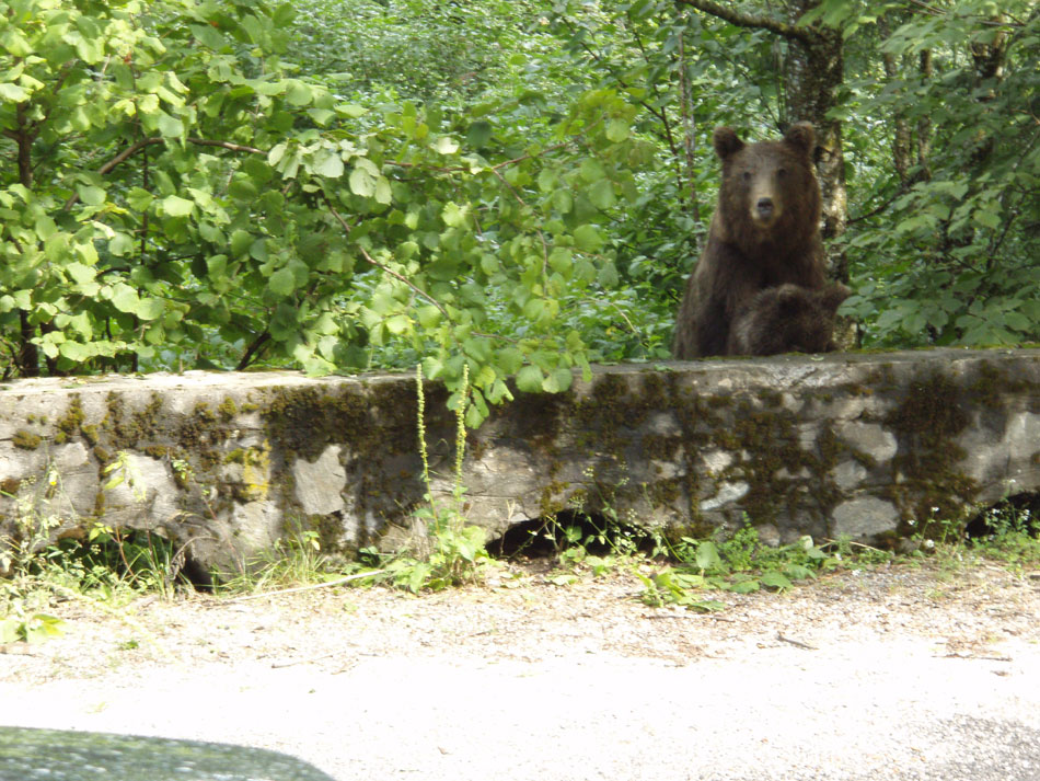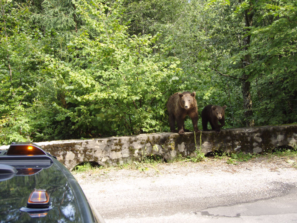 11.20 hod. - První kontakt s medvědem !!! U přehrady Lacul Vidralui nás na cestě v zatáčce překvapila medvědice s medvídětem. Byla 5 m od našeho vozu. Nebyla agresivní a tak si odnášíme