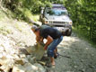 15.00 hod. - Tak jsme to dali z vrcholku Sermetes 1306 m lesní těžební cestou, která byla po deštích jak bobová dráha. Místy roztrhaná od eroze nebo od Taftu, který tudy tahá klády.