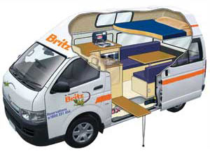 DopravaPronajatými HiTop Campervan (Toyota nobo Nissan) pro 2 osoby. Auta jsou vybavena kompletním vybavením pro pobyt v přírodě (lednice, grill, plynový vařič, nádobí, zásobník na vodu, atd.). včetně postelí vybavených kompletní ložním prádlem (prostěradlo, polštář, spací pytel).